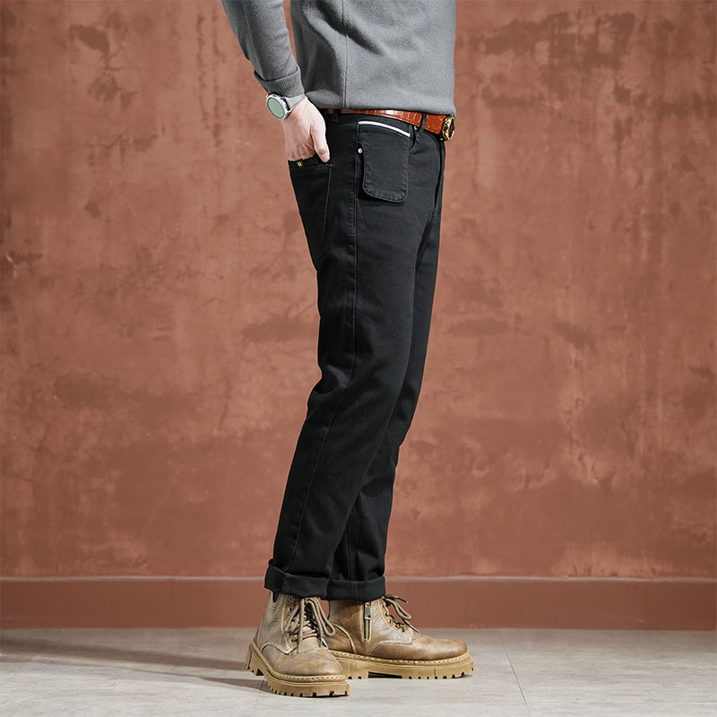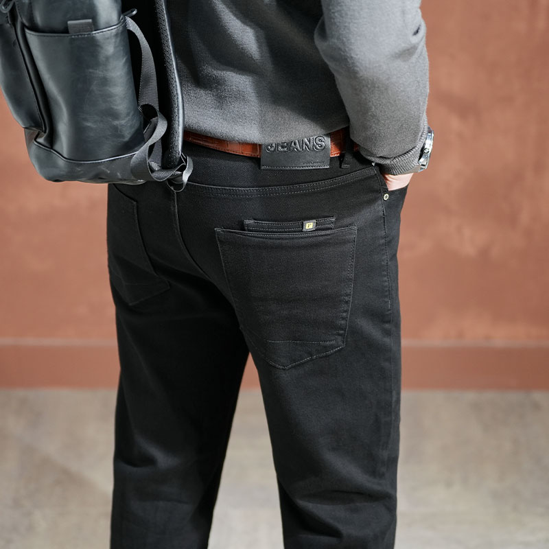 男士 显瘦裤 2025春季 合体直筒百搭修身 子男 新款 秋冬重磅黑色牛仔裤