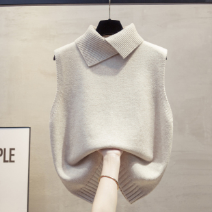 翻领针织马甲背心女2025秋冬新款 宽松外穿马夹叠穿洋气毛衣坎肩