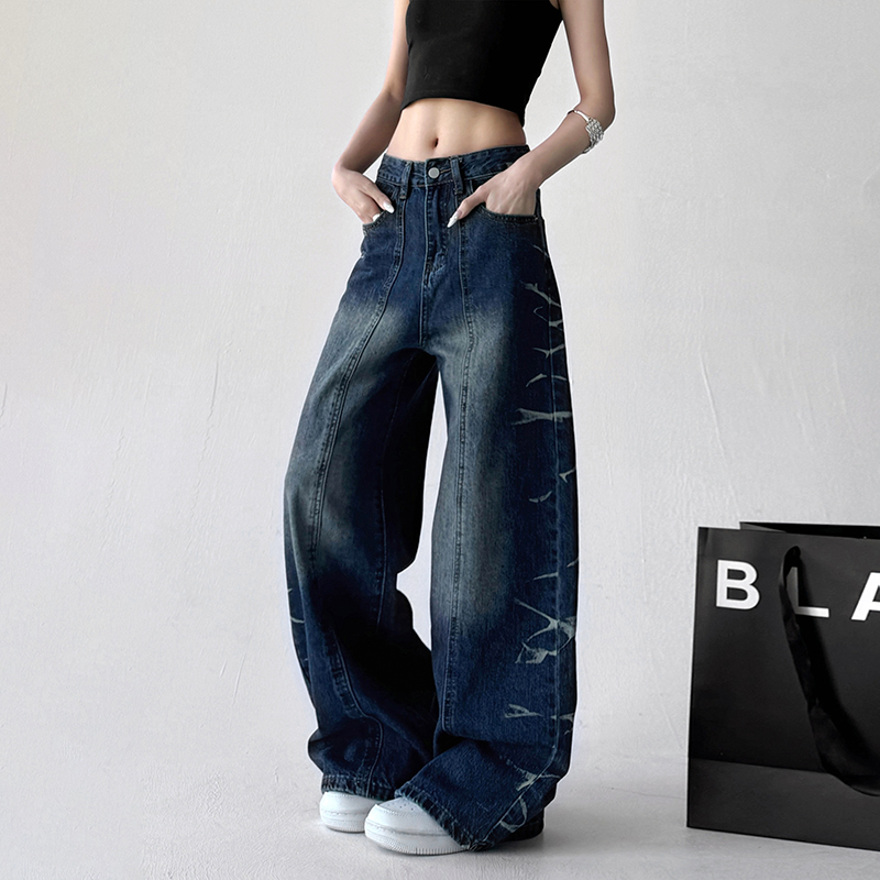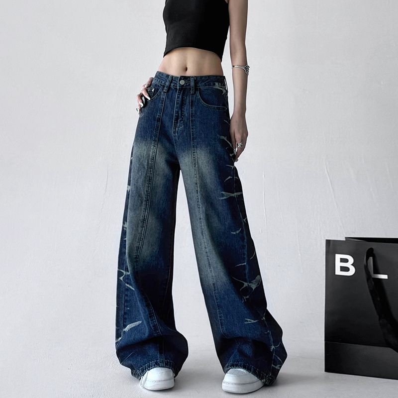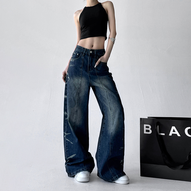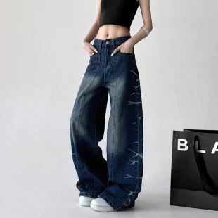 慵懒拖地直筒裤 女2025夏季 宽松阔腿牛仔裤 淘稚气防褪色丹宁蓝美式