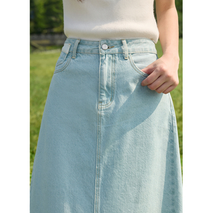 淡蓝色荷叶边拼接牛仔半身裙女早秋新款 不规则a字大摆伞裙 中长款
