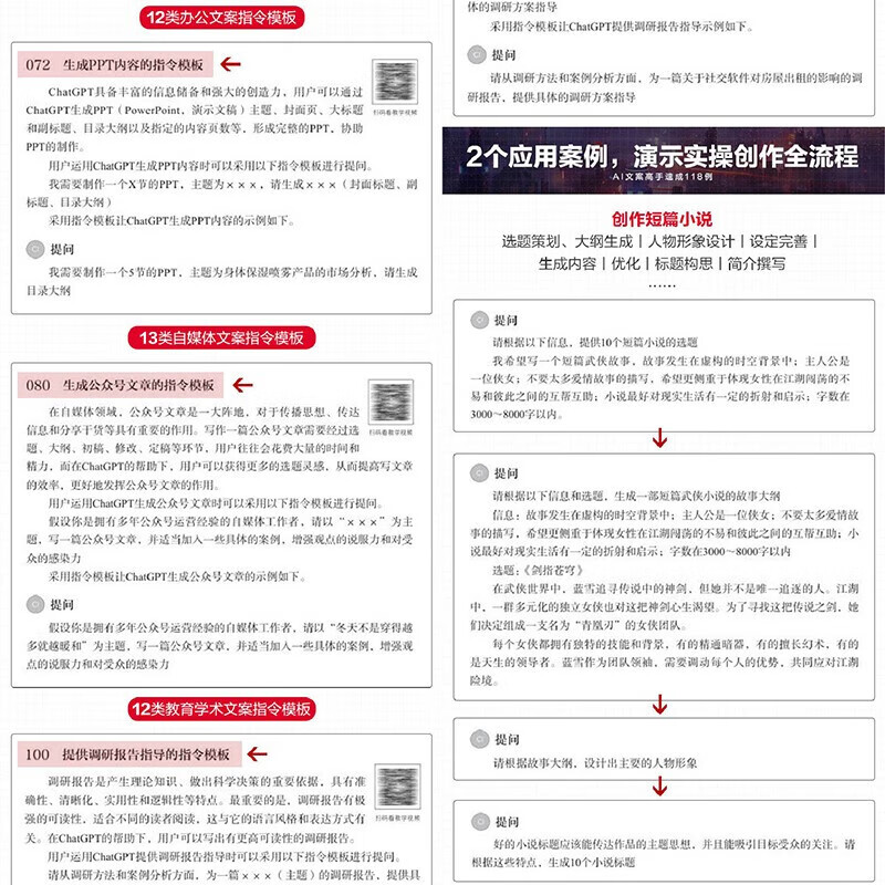 提问和入门技巧 收藏与调用 热门模板 使用 文案 指令示例 修改润色 应用案例 模板 AI文案高手速成118例 选择和复制 提问生成