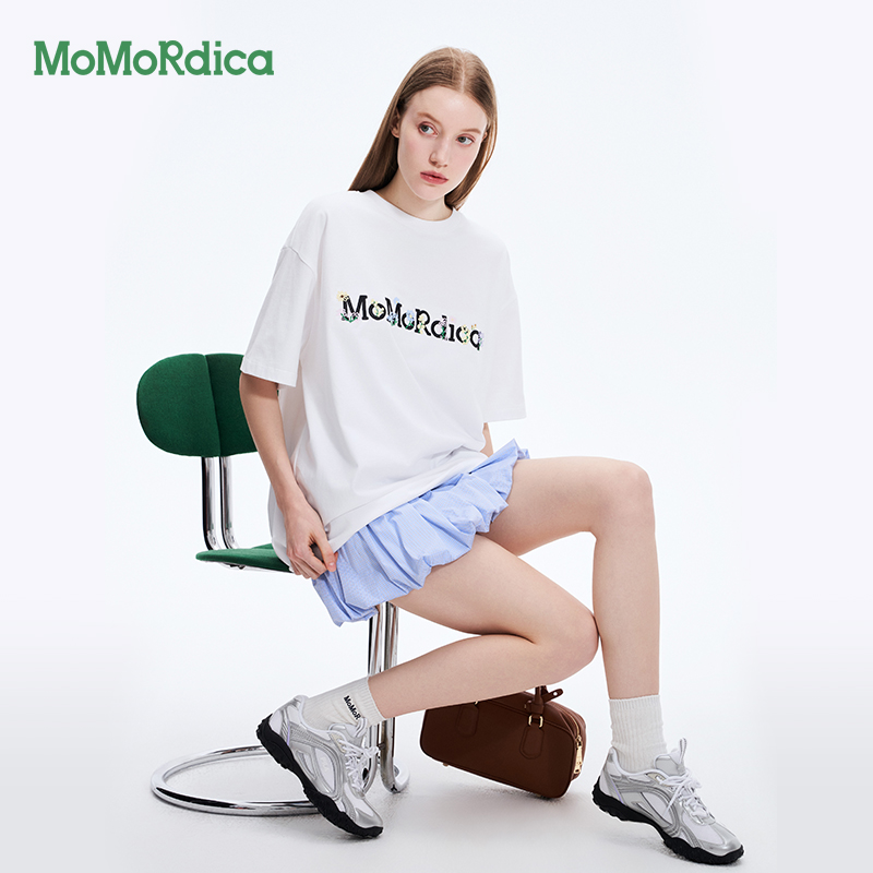 绣花短袖 纯棉舒适休闲百搭圆领薄款 Momordica2025夏季 T恤女 清仓
