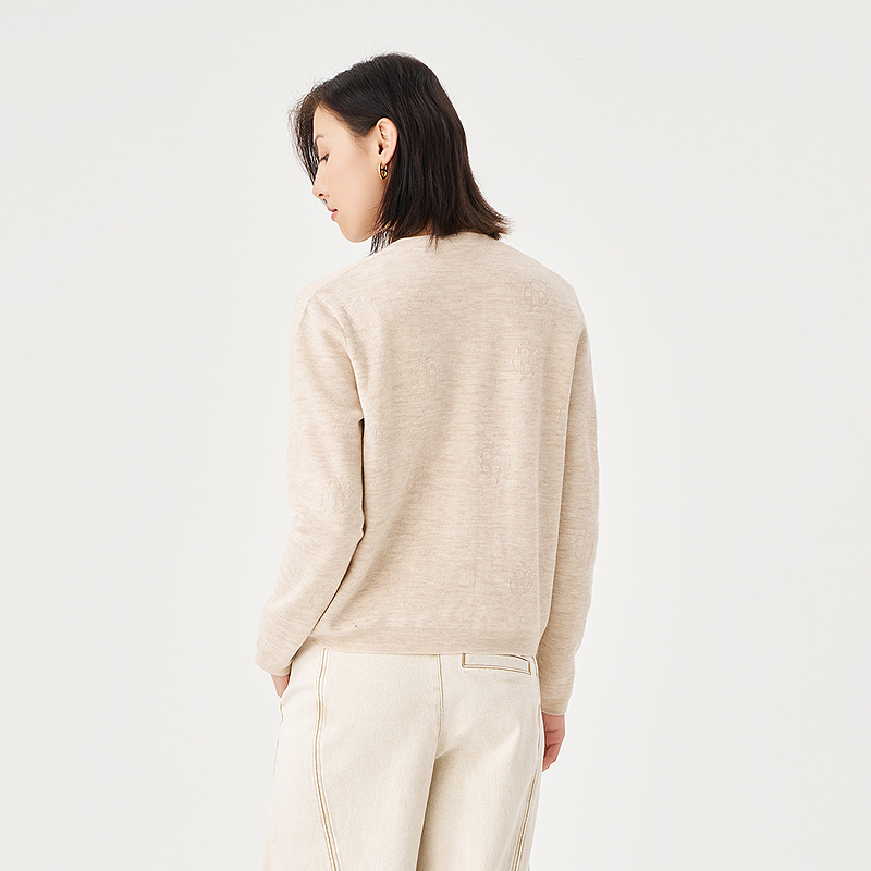 新款 2025春季 直身圆领毛织开衫 女短款 OTT 100%羊毛衫 商场同款