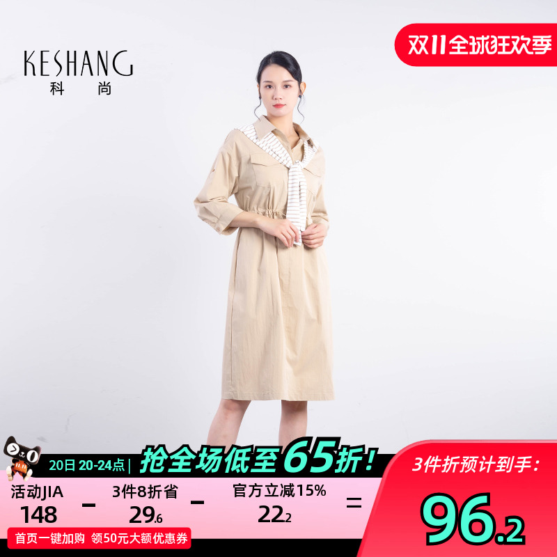 衬衫 藏青色长袖 连衣裙气质收腰流行缎面裙子女 新款 DPLAY2025秋季