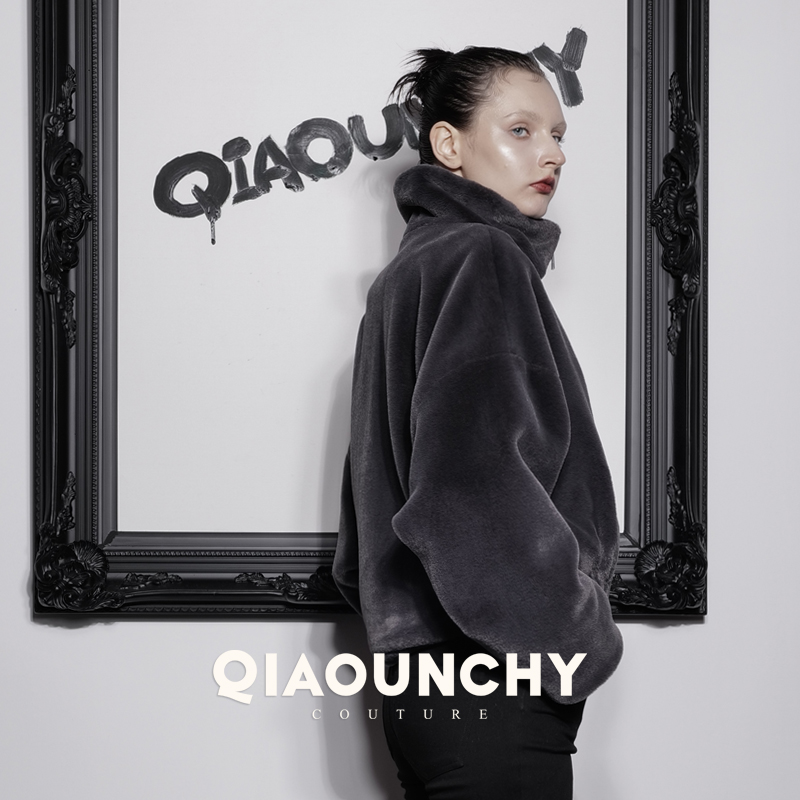 25冬深灰色软糯兔毛高领松身短外套 QIAOUNCHY俏云曦 温暖 兔子