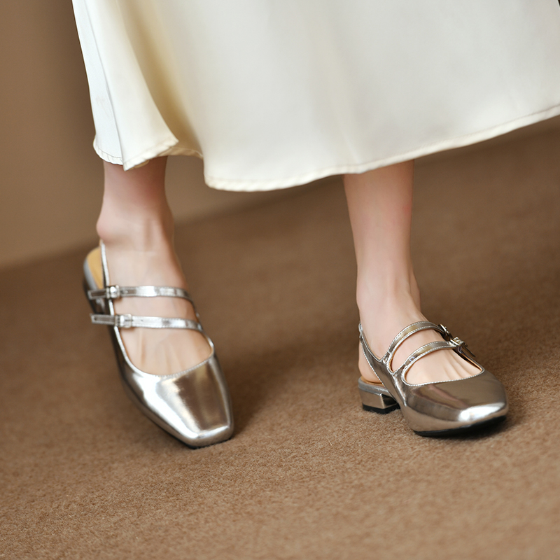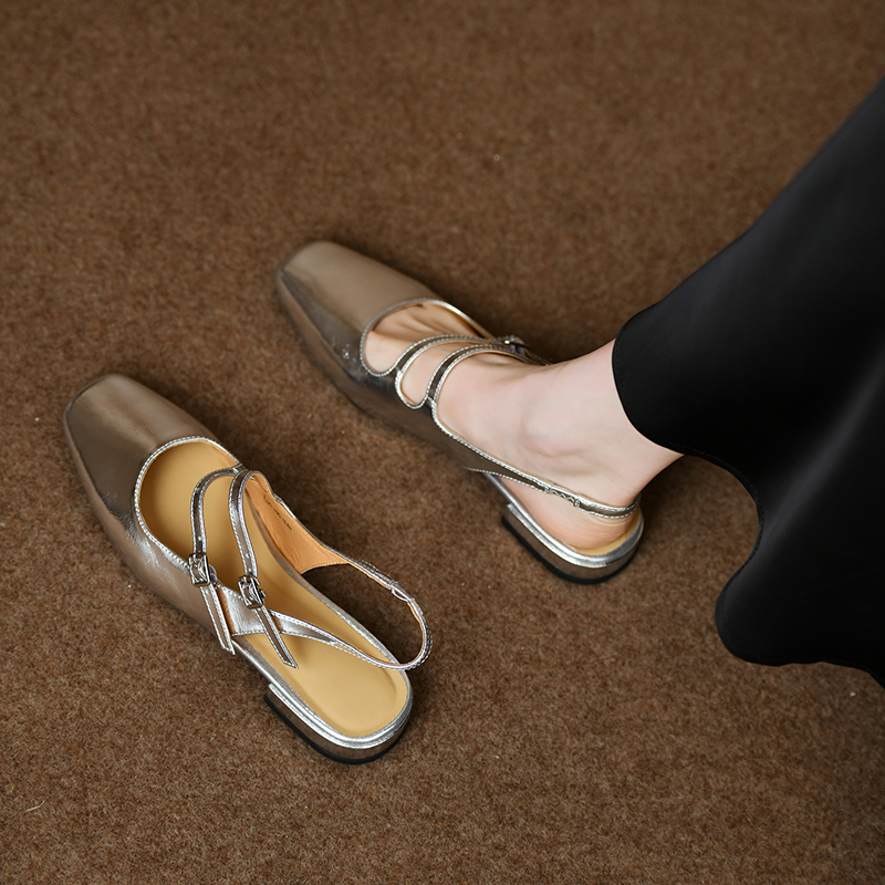 仙女风晚晚单鞋 法式 女2025春夏新款 方头包头凉鞋 低跟银色玛丽珍鞋