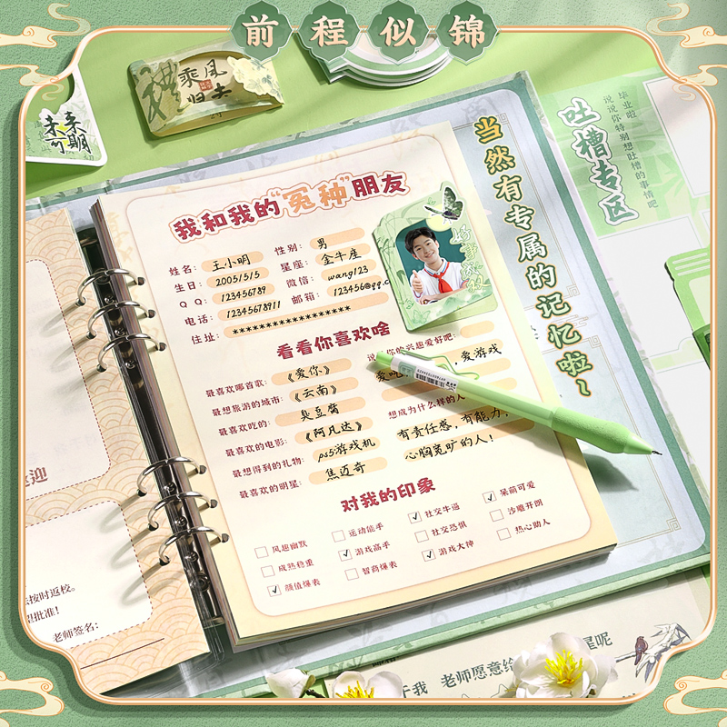 国潮古风同学录毕业纪念册高颜值小学生六年级2025新款 女生活页可拆卸ins风通讯录小众初高中男diy毕业纪念本