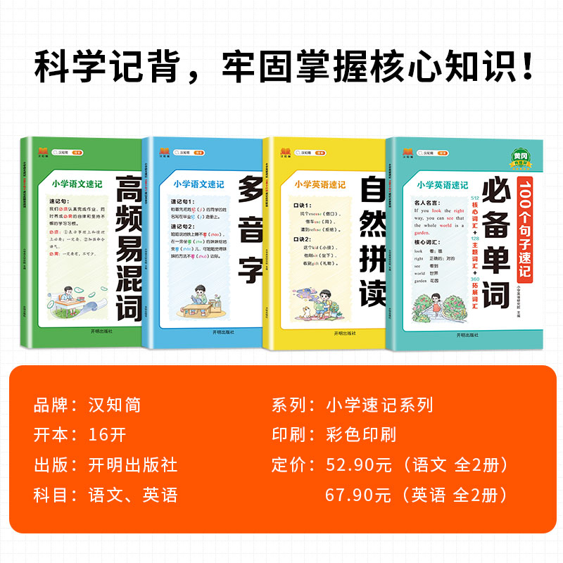 汉知简小学英语速记100个句子速记必备单词自然拼读小学语文速记100个句子速记多音字高频易混词英语词汇速记大全汉字速记思维导图