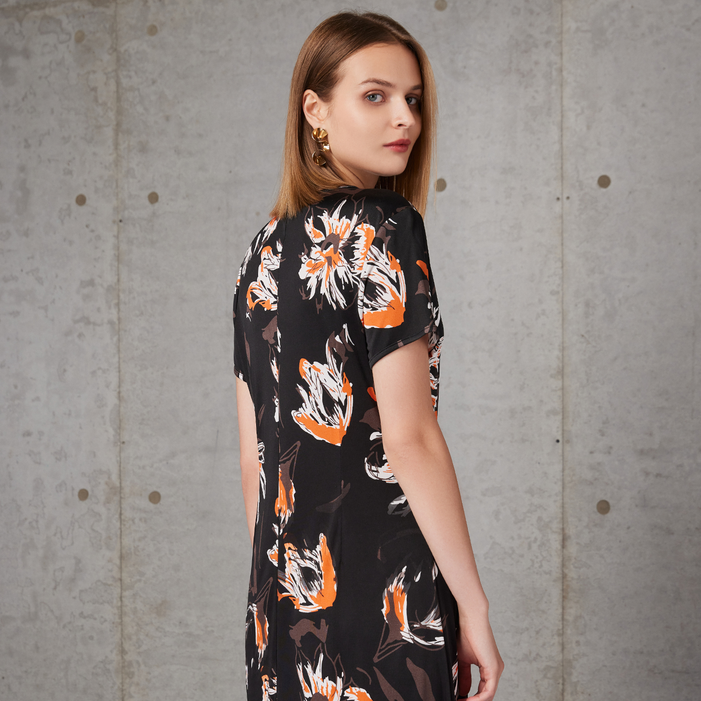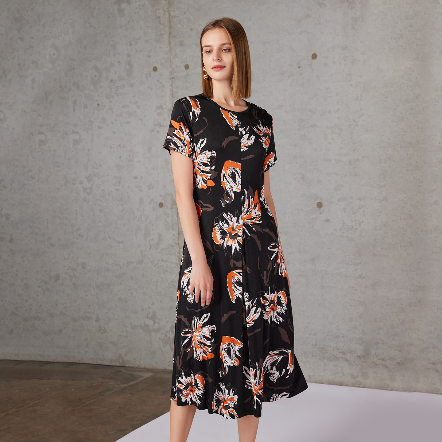 裙子春夏新款 鹿王桑蚕丝女士凉感针织连衣裙圆领短袖 专柜同款