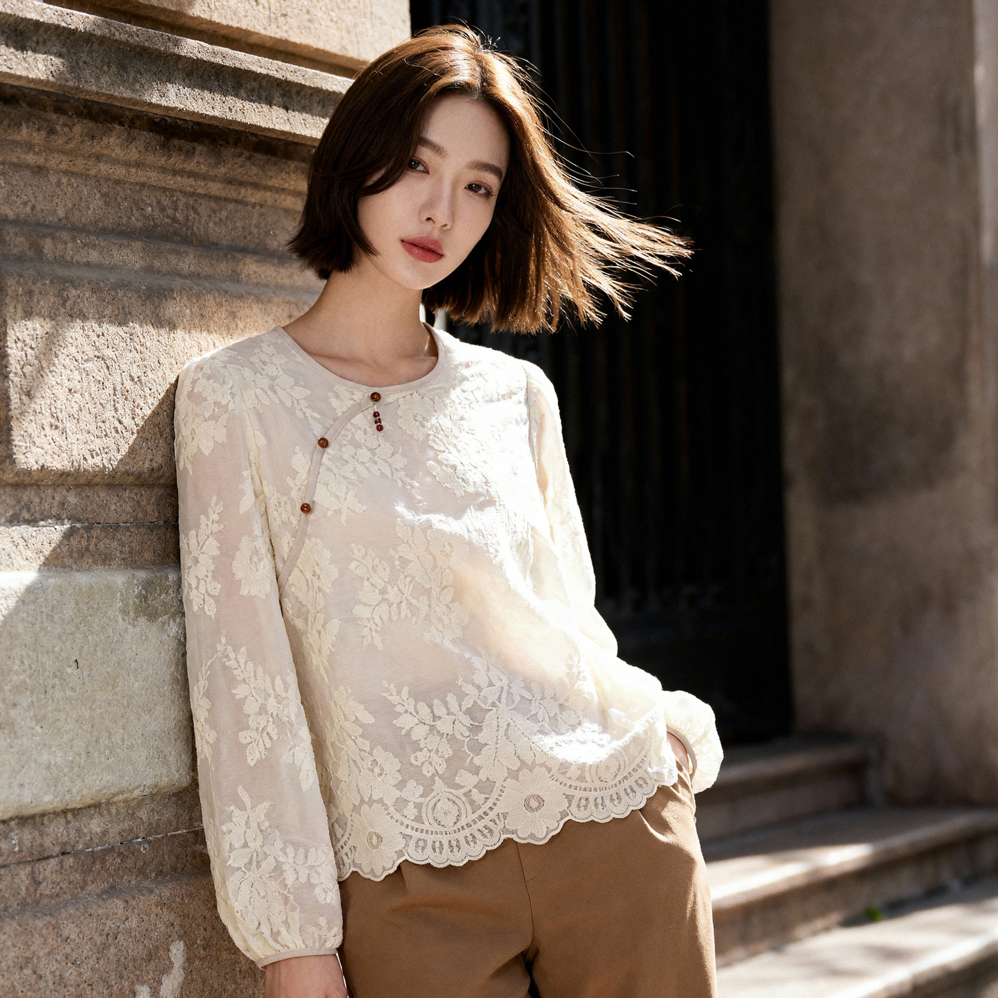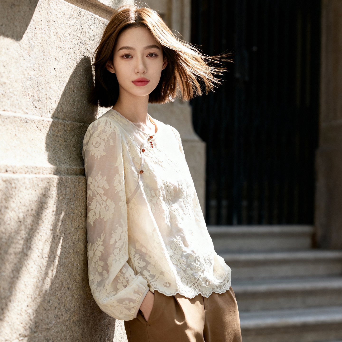 2025春季 女长袖 气质通勤飘带衬衣醋酸上衣 高级感立领缎面衬衫 法式