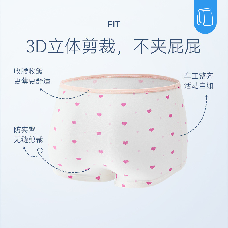 莫代尔少女纯棉女士内裤 3件 蕉内银皮301Color可爱印花女三角裤