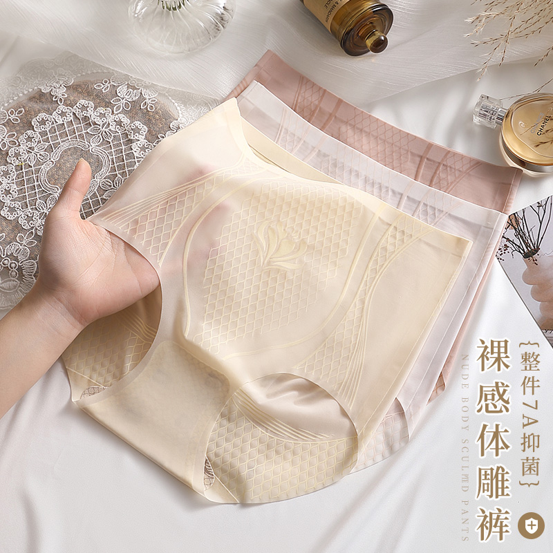 夏 薄款 无痕高腰收腹内裤 女透气7A抑菌塑形冰丝舒适裸感三角短裤