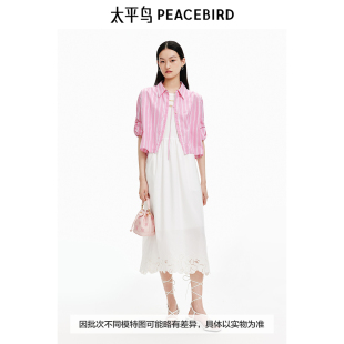 纯棉拼接蕾丝宽松衬衣女长袖 女新款 18345616 佐丹奴白衬衫 设计师款