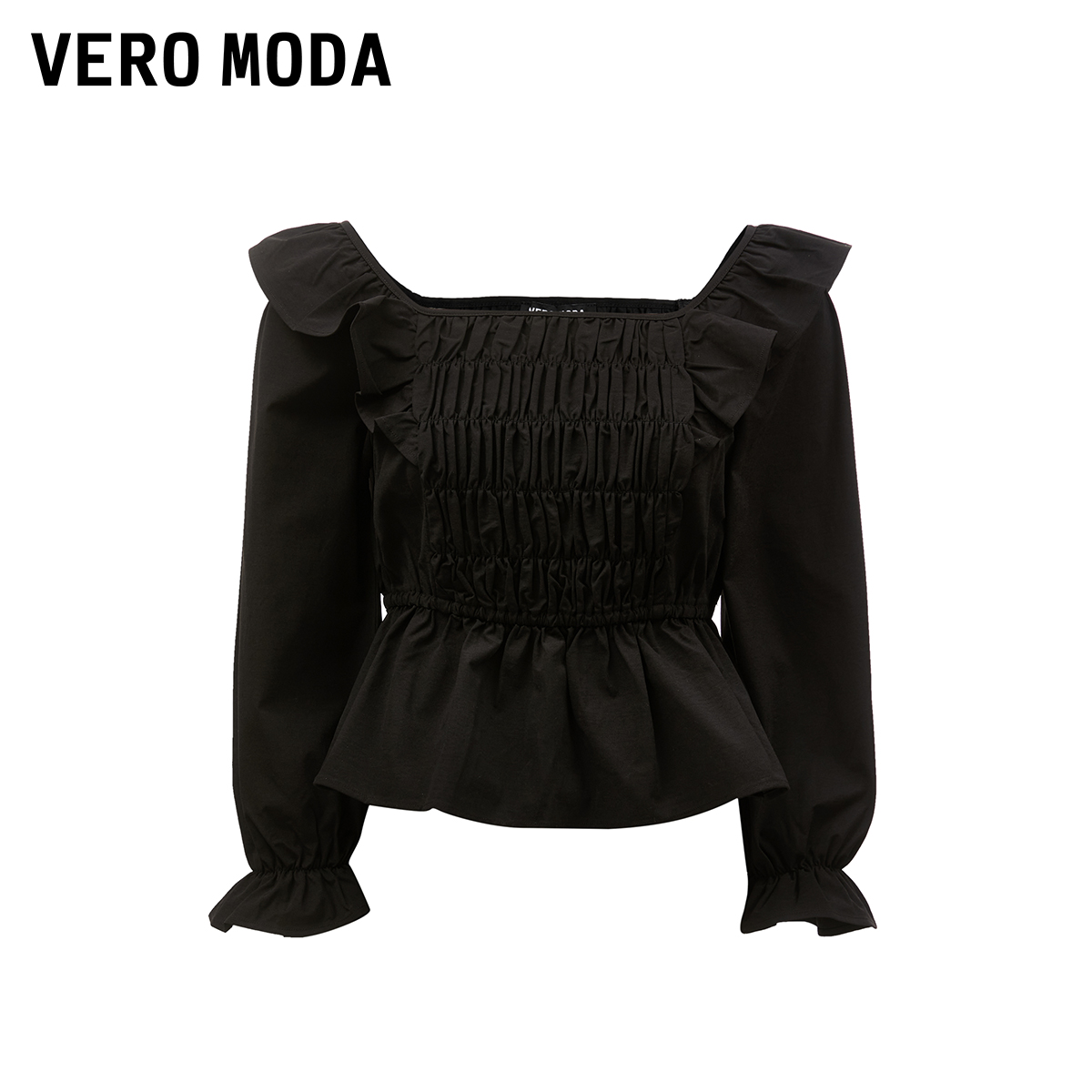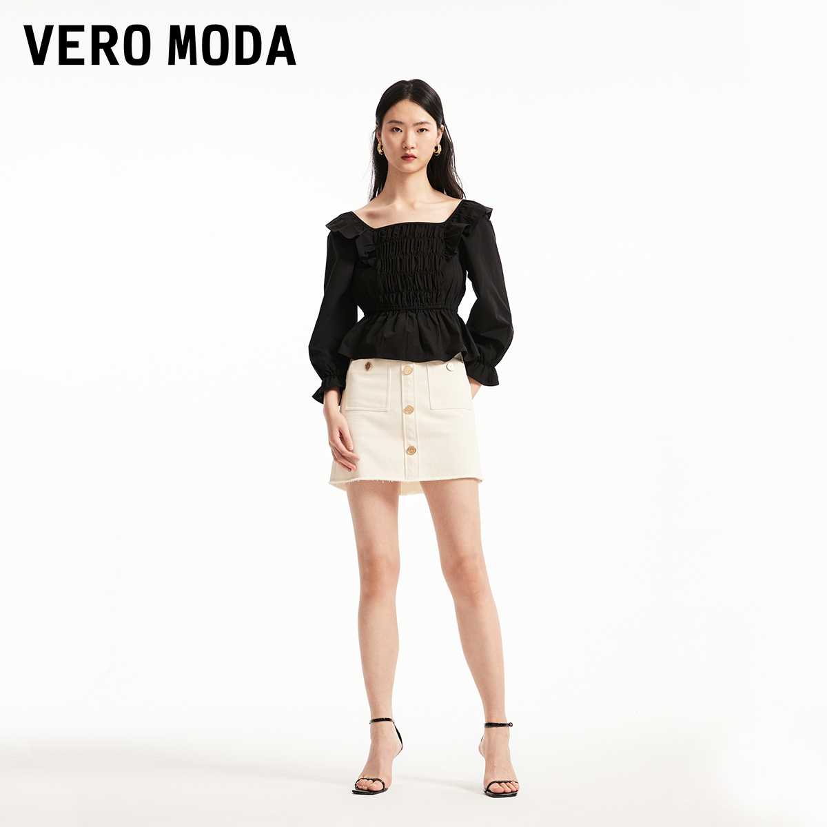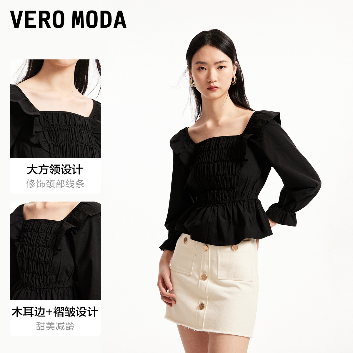 优雅方领木耳荷叶边修身 新商场同款 显瘦 Moda奥莱上衣女夏季 Vero
