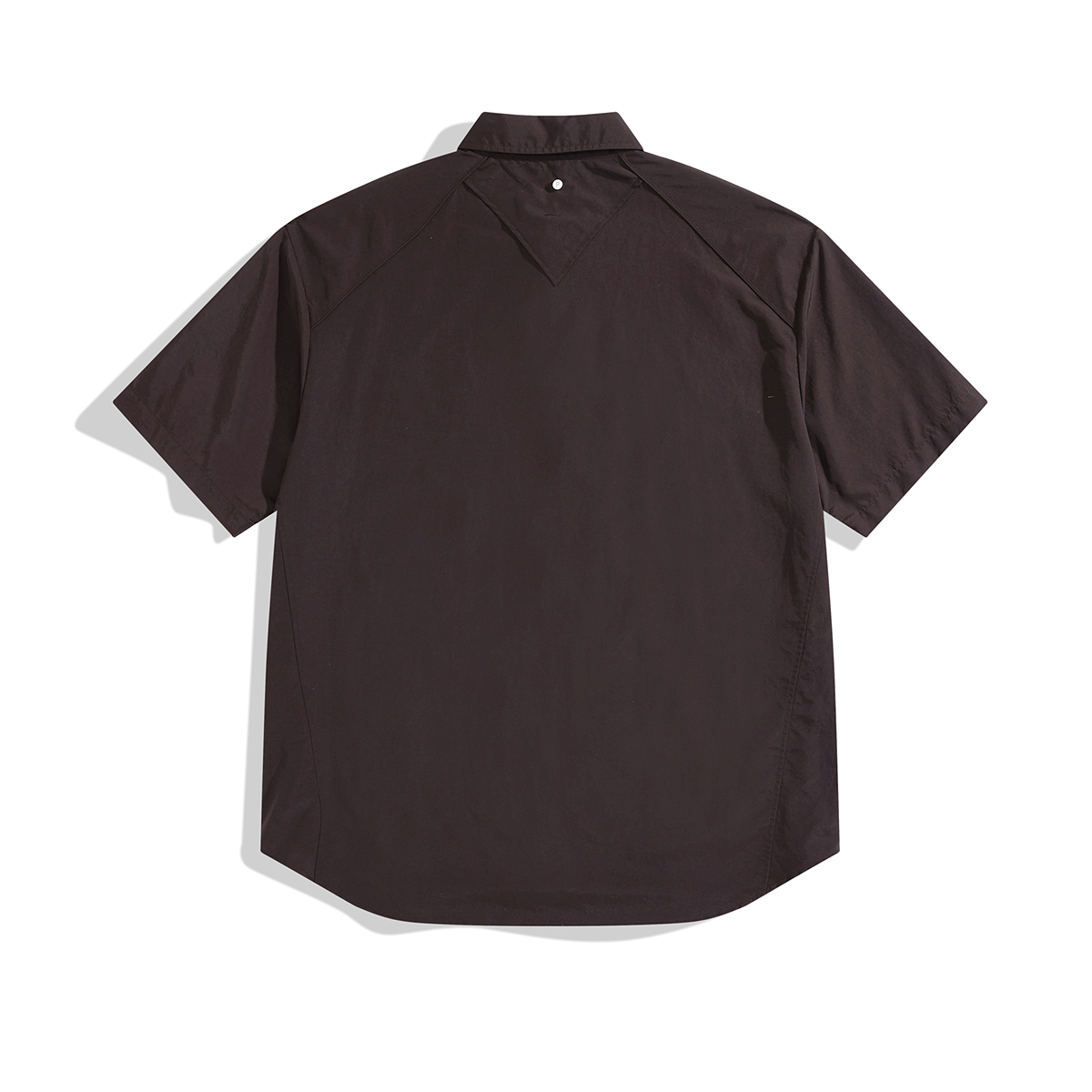 阔版 夏季 翻领美拉德潮流百搭款 短袖 太平鸟男装 衬衫 黑色衬衫