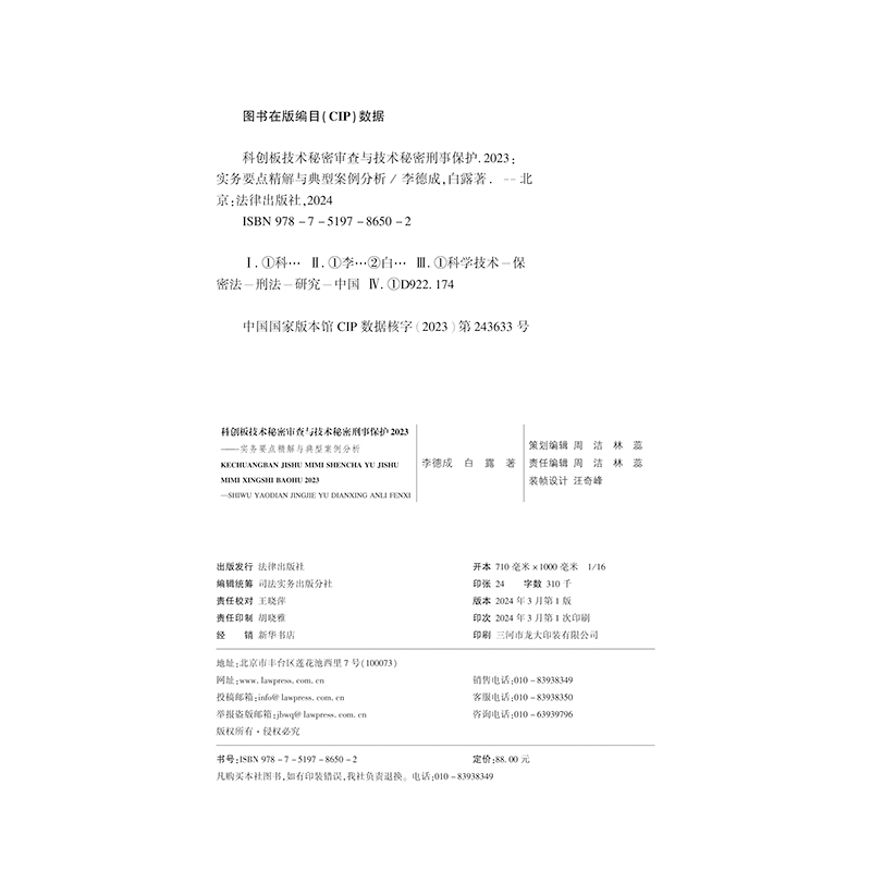 2024新书 白露 科创板技术秘密审查与技术秘密刑事保护2023 李德成 金诚同达30周年文集 实务要点精解与典型案例分析 正版