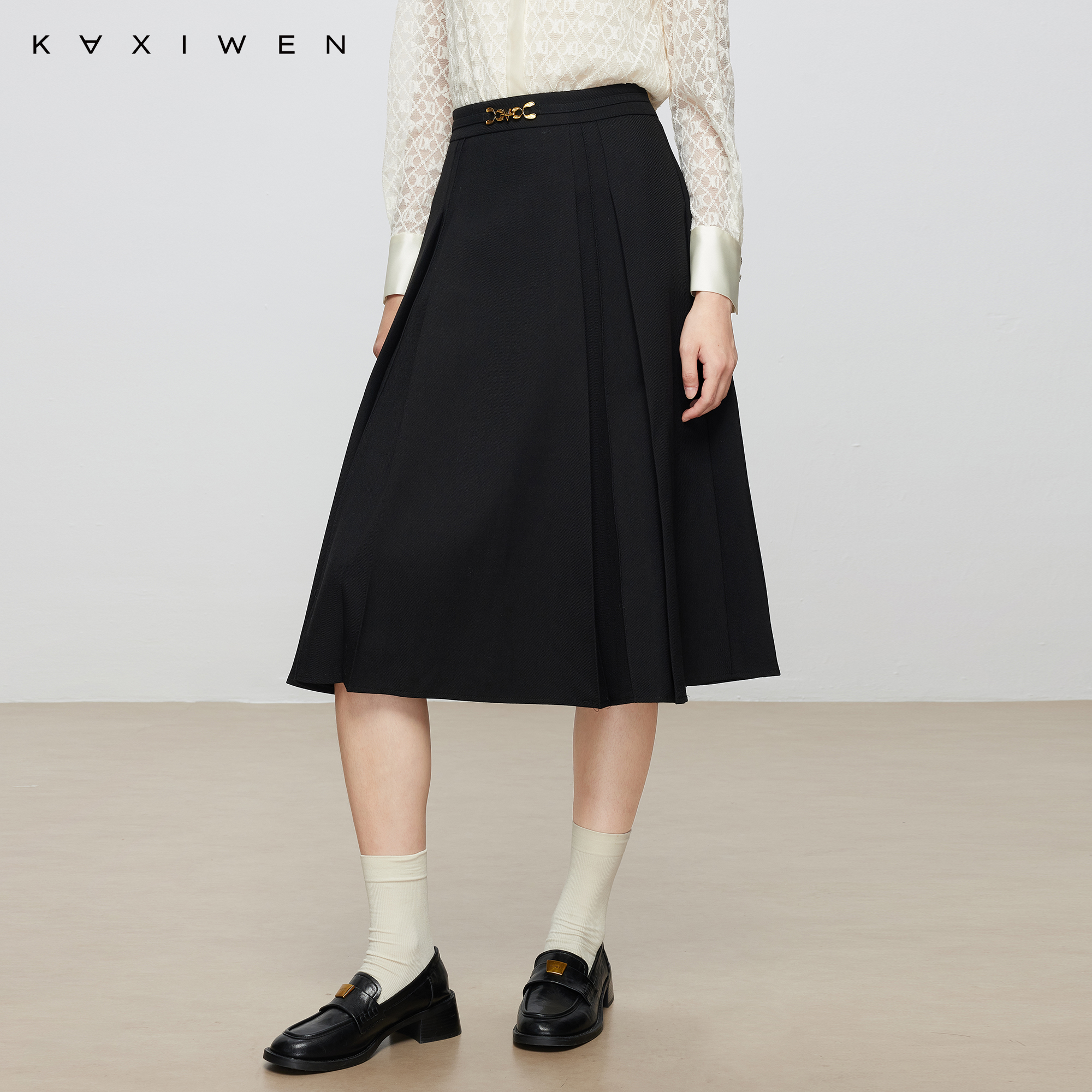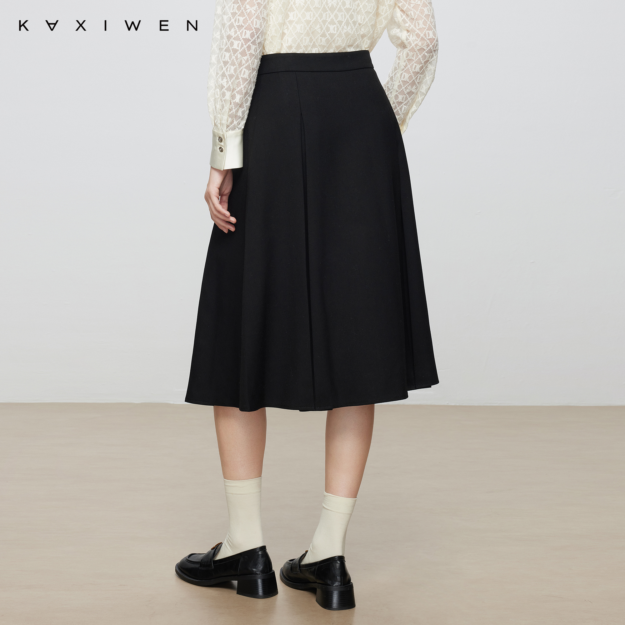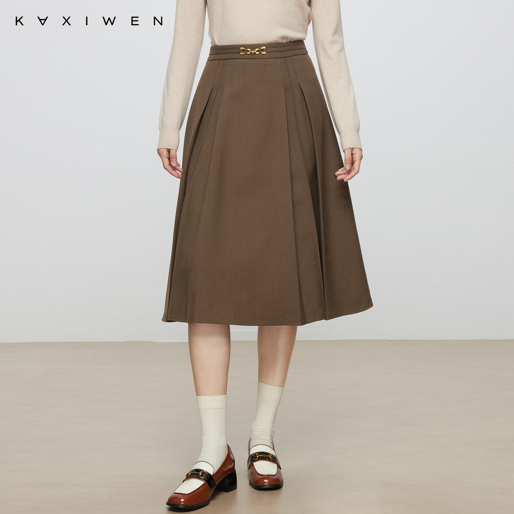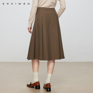 佧茜文通勤百搭半身裙潮流冬季 复古纯色高腰压褶A字显瘦伞裙 新款