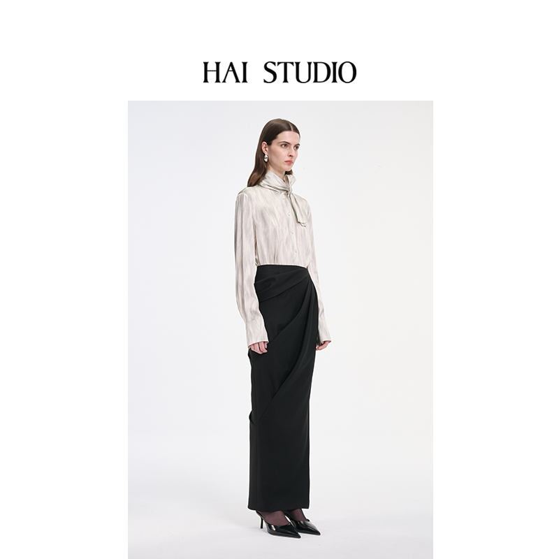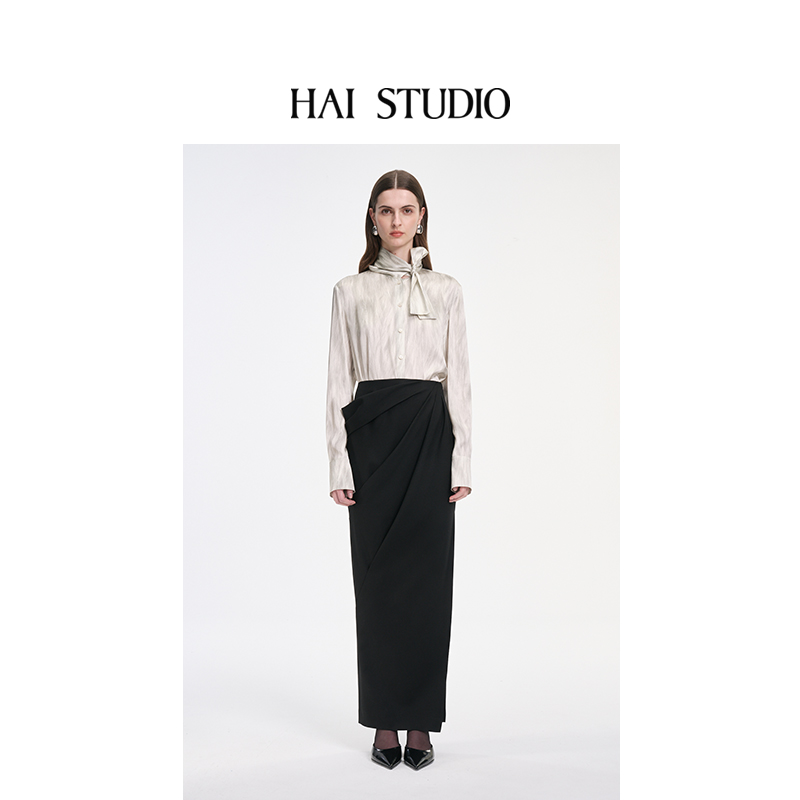 休闲直筒中长西装 CHICJOJO灰色半身裙女25秋新款 裙 缪斯半裙