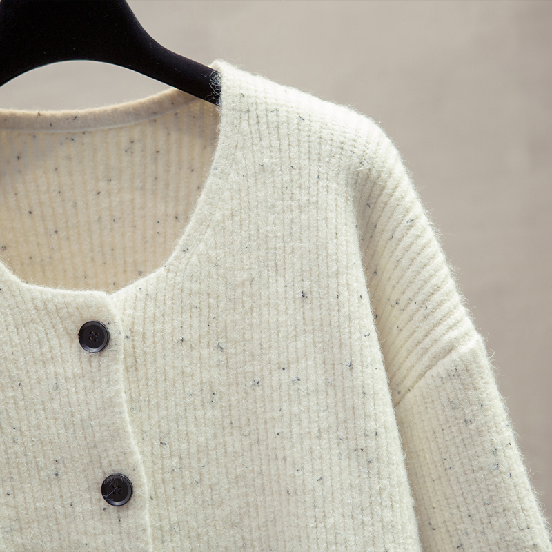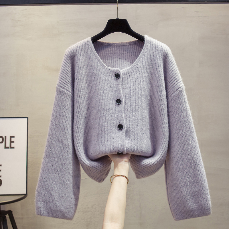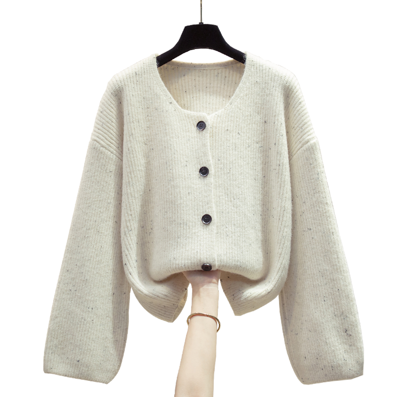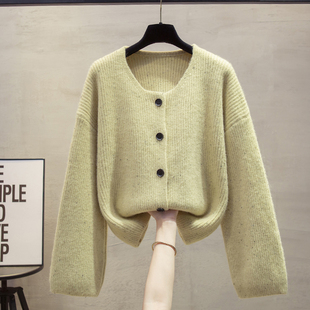 宽松外穿上衣洋气毛衣外套 女2025秋冬新款 花纱灯笼袖 圆领针织开衫