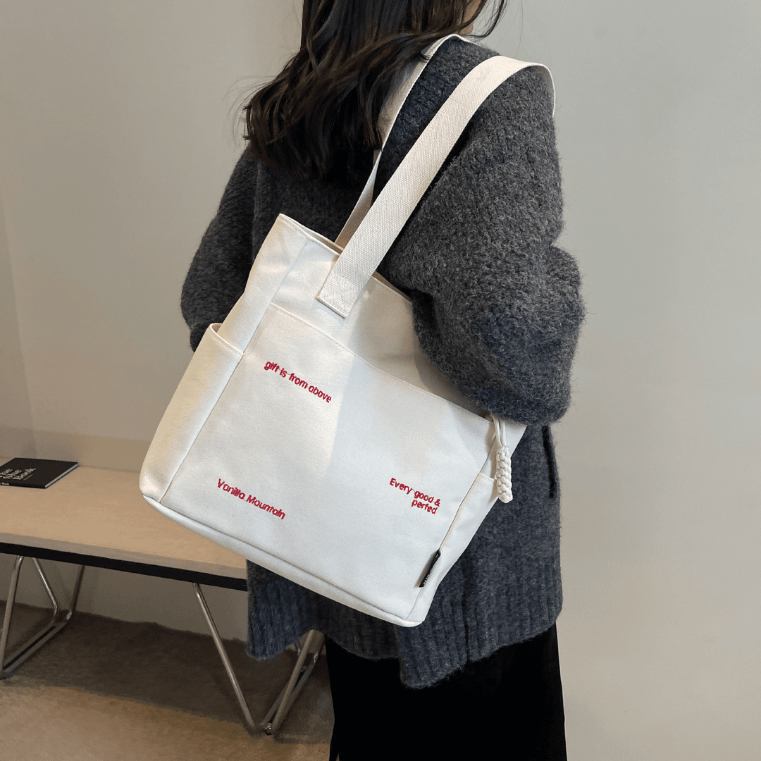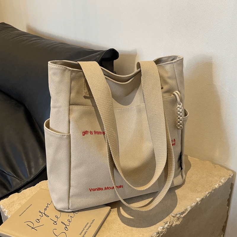 学生大学生上课帆布包女2024新款 大容量休闲百搭手提通勤托特