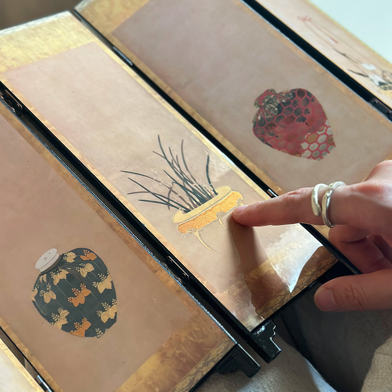博古烫金桌面屏风侘寂风客厅玄关小众礼物装 新中式 饰摆件 原发