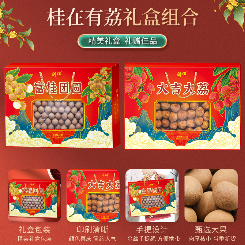 闽祥福建大果桂圆干荔枝干礼盒组合肉厚核小新货中秋送礼龙眼肉干