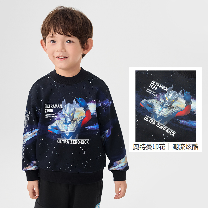 童装 奥特曼IP巴拉巴拉男童加绒卫衣宝宝宽松打底儿童2025冬装 新款