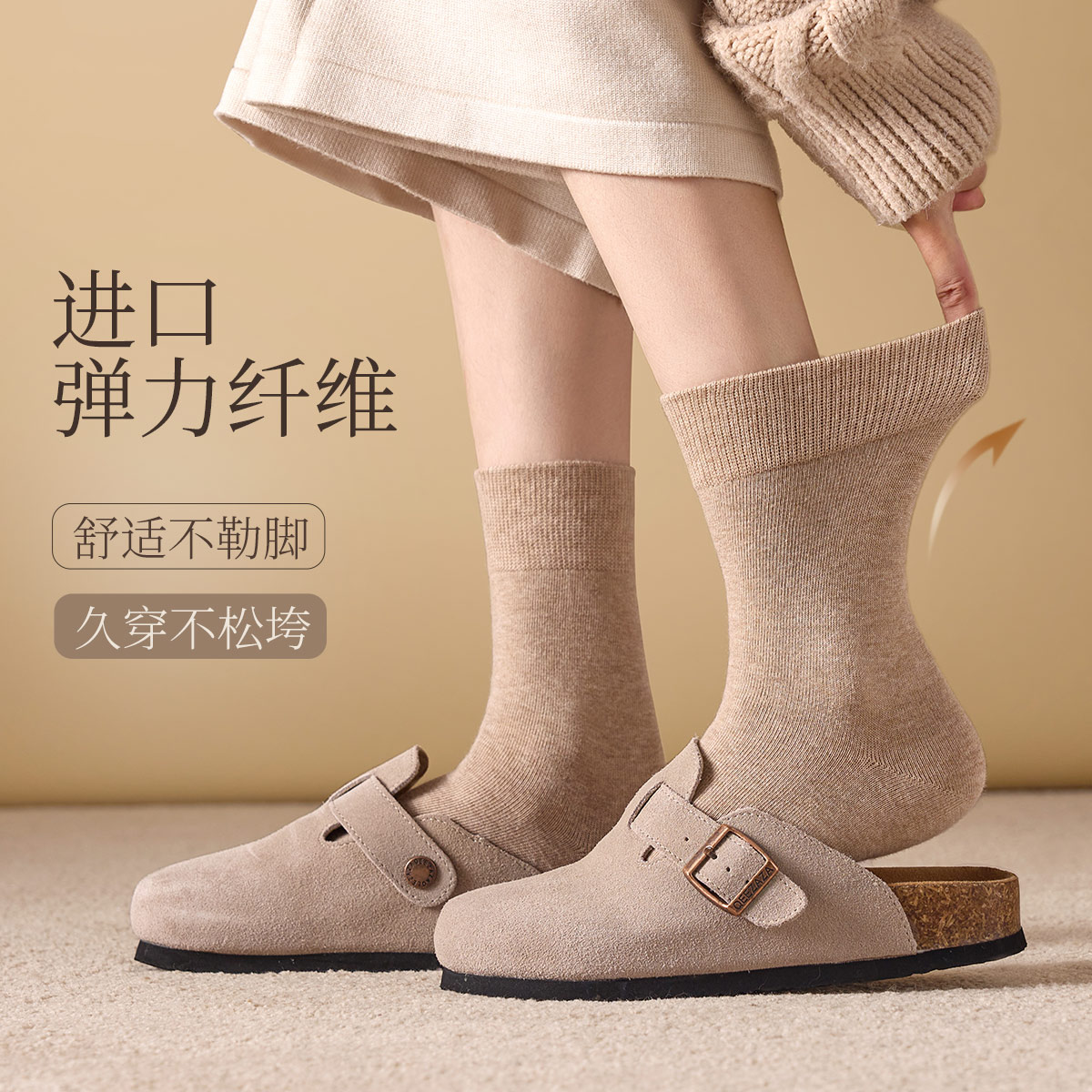 棉伙棉伴海藻袜舒适抗菌防臭男女商务运动纯色裸感中筒袜
