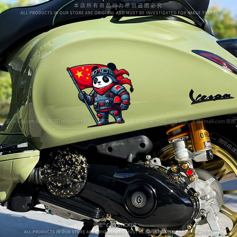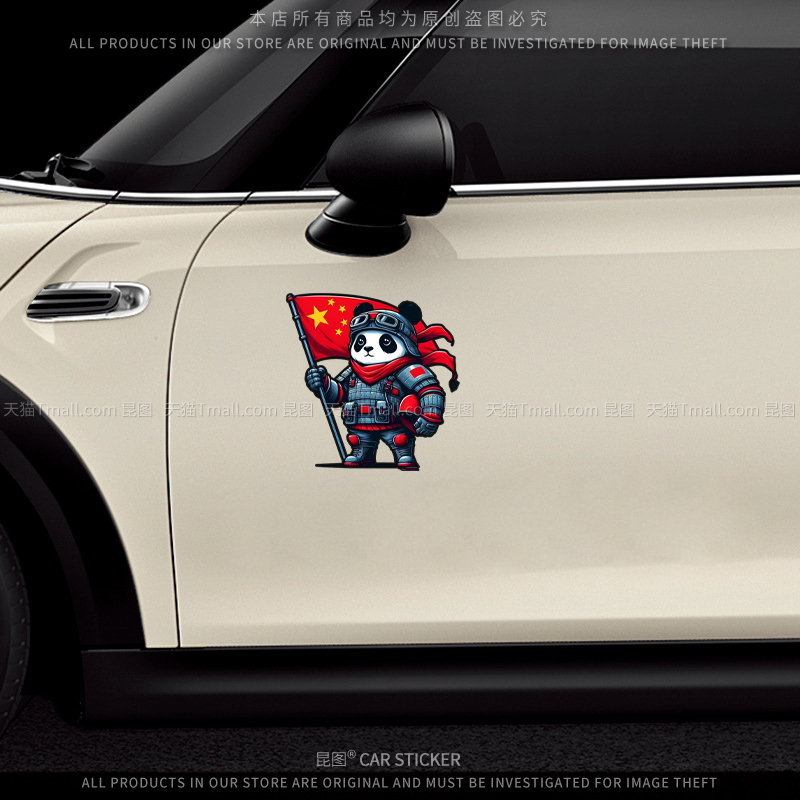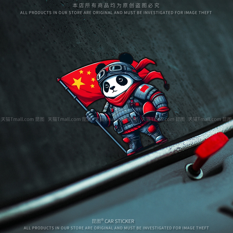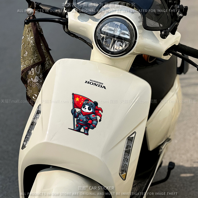 熊猫国潮汽车贴纸电动车身贴个性 饰摩托车 创意遮挡划痕车窗玻璃装
