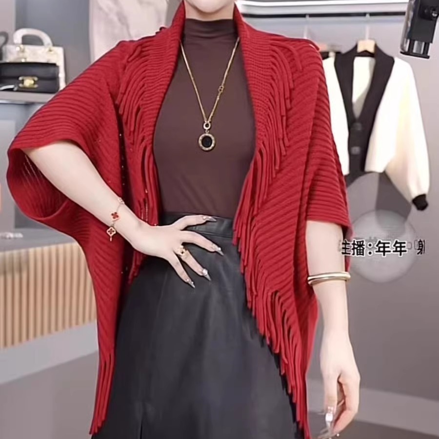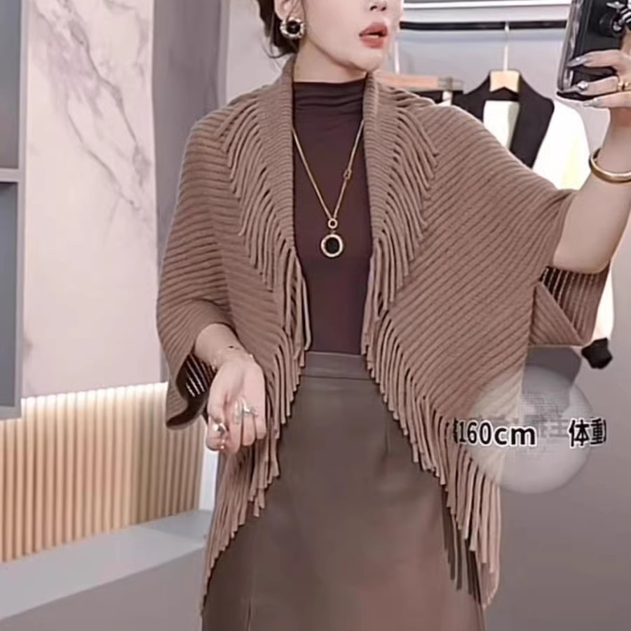 2025新款 开衫 韩版 外搭时尚 宽松时尚 高级感流苏针织斗篷披肩女秋季