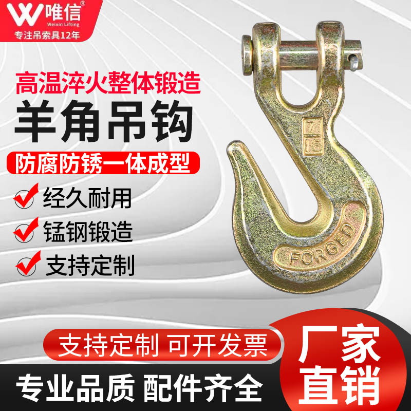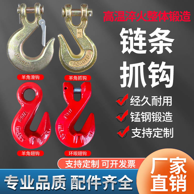 羊角抓钩美式 羊角滑钩起重弯钩链条调节钩环眼带翅抓钩羊角吊钩