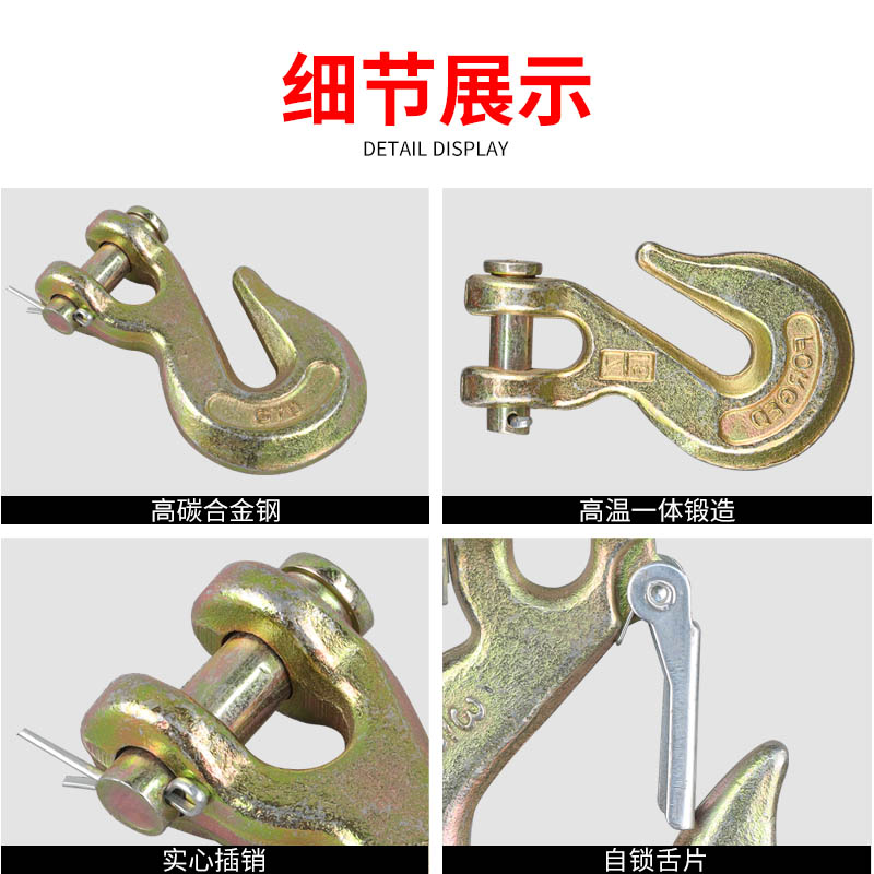 羊角吊钩保险舌片高强度起重索具滑钩卡链条钩子带翅抓钩安全挂钩