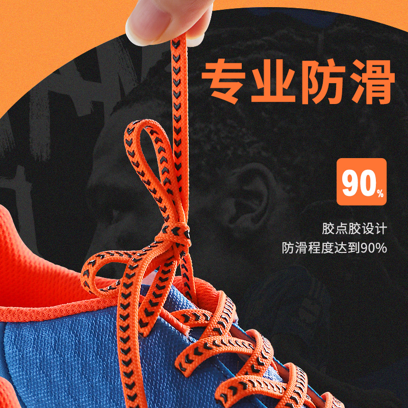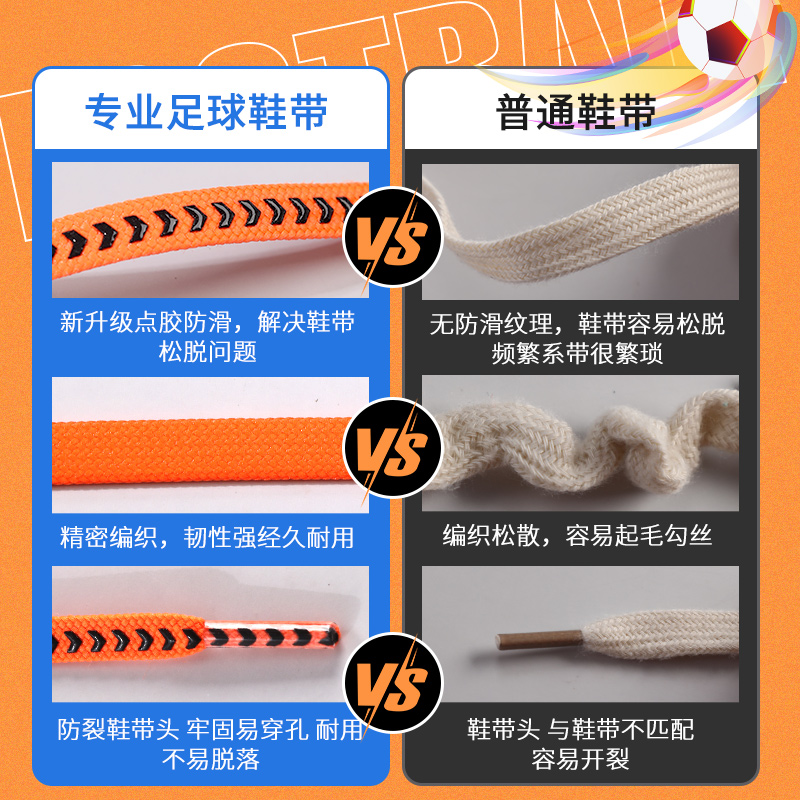 绳男女款 专用运动鞋 扁平硅胶橙彩黑白色耐磨防松散 带足球鞋 防滑鞋
