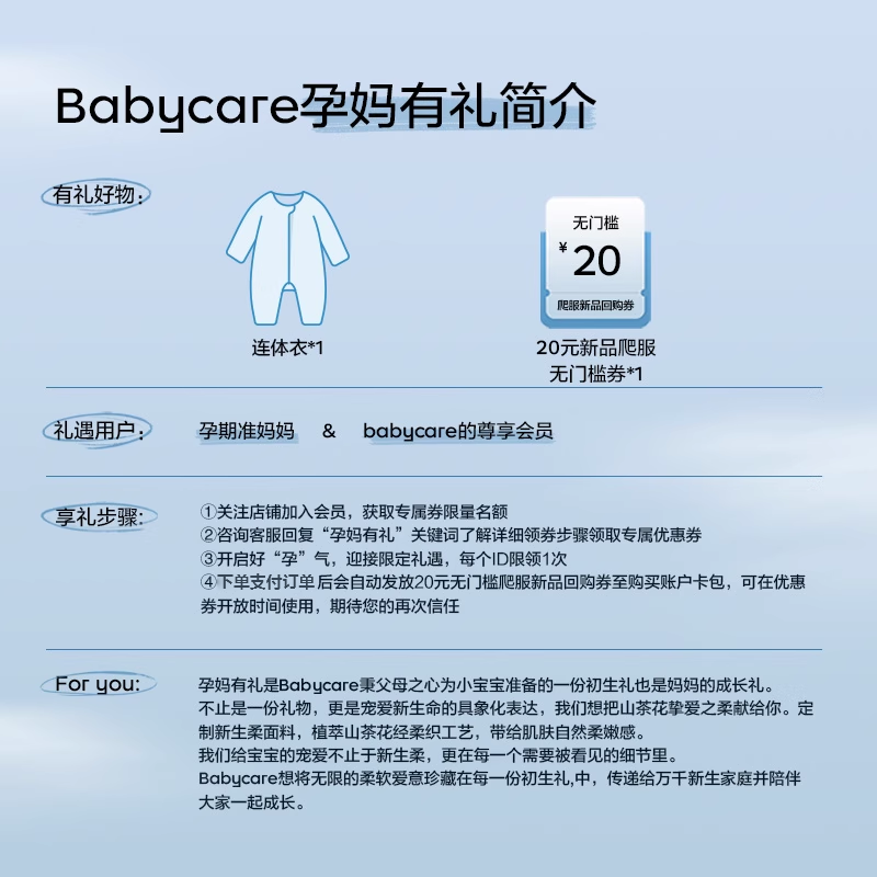 婴儿宝宝连体衣新生儿见面礼 babycare山茶花体验装 孕妈有礼