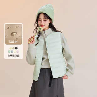 雪中飞25冬新款 圆领轻薄羽绒背心马甲户外百搭保暖 男女短款
