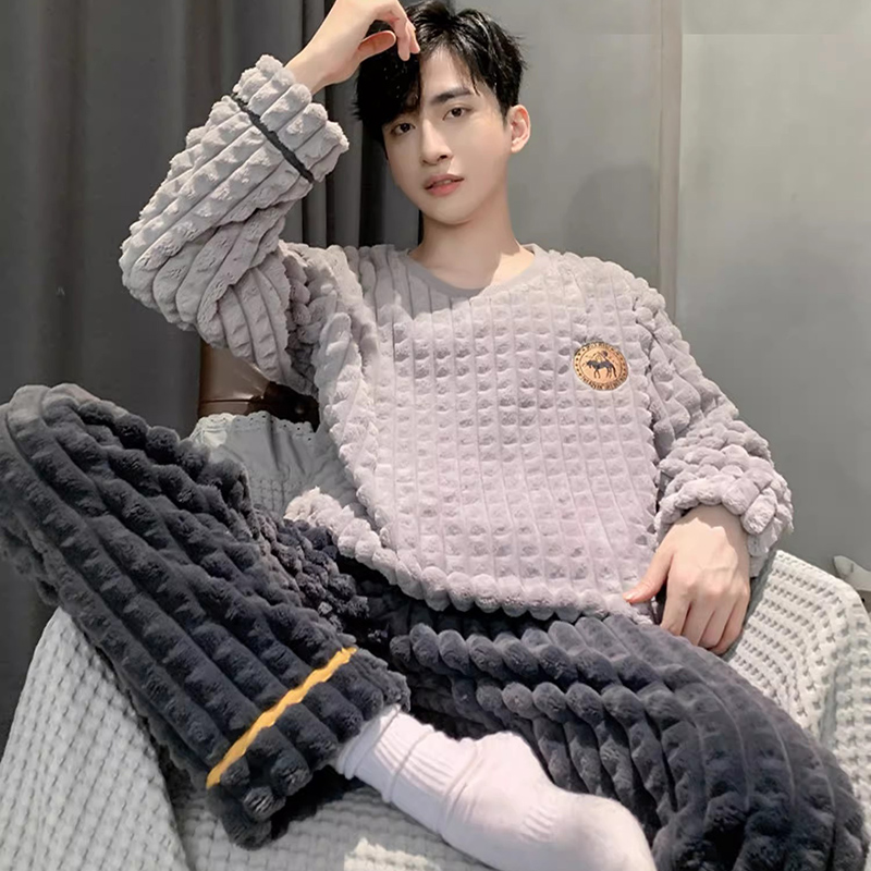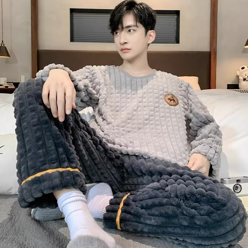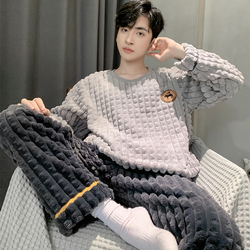 冬季 冬天套装 加绒加厚秋冬款 家居服男款 青少年大码 珊瑚绒睡衣男士