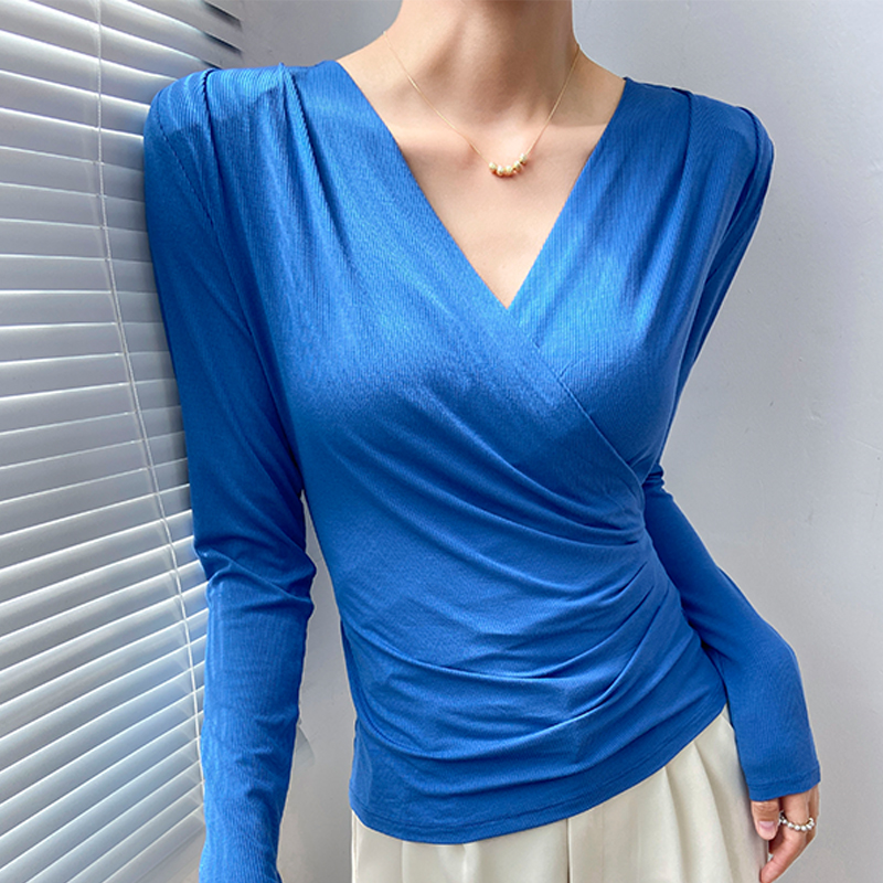 交叉长袖 黑色打底衫 爆款 可外穿高端洋气气质小衫 V领小上衣 女秋季