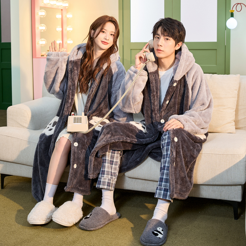 可爱柴犬唐狮睡袍冬季 珊瑚绒睡衣女加厚加绒外穿可家 情侣男士