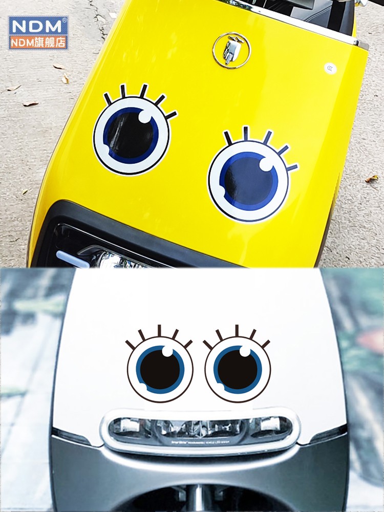 大眼睛表情电动车贴纸防水防晒汽车后视镜装 饰划痕遮挡贴 饰可爱装