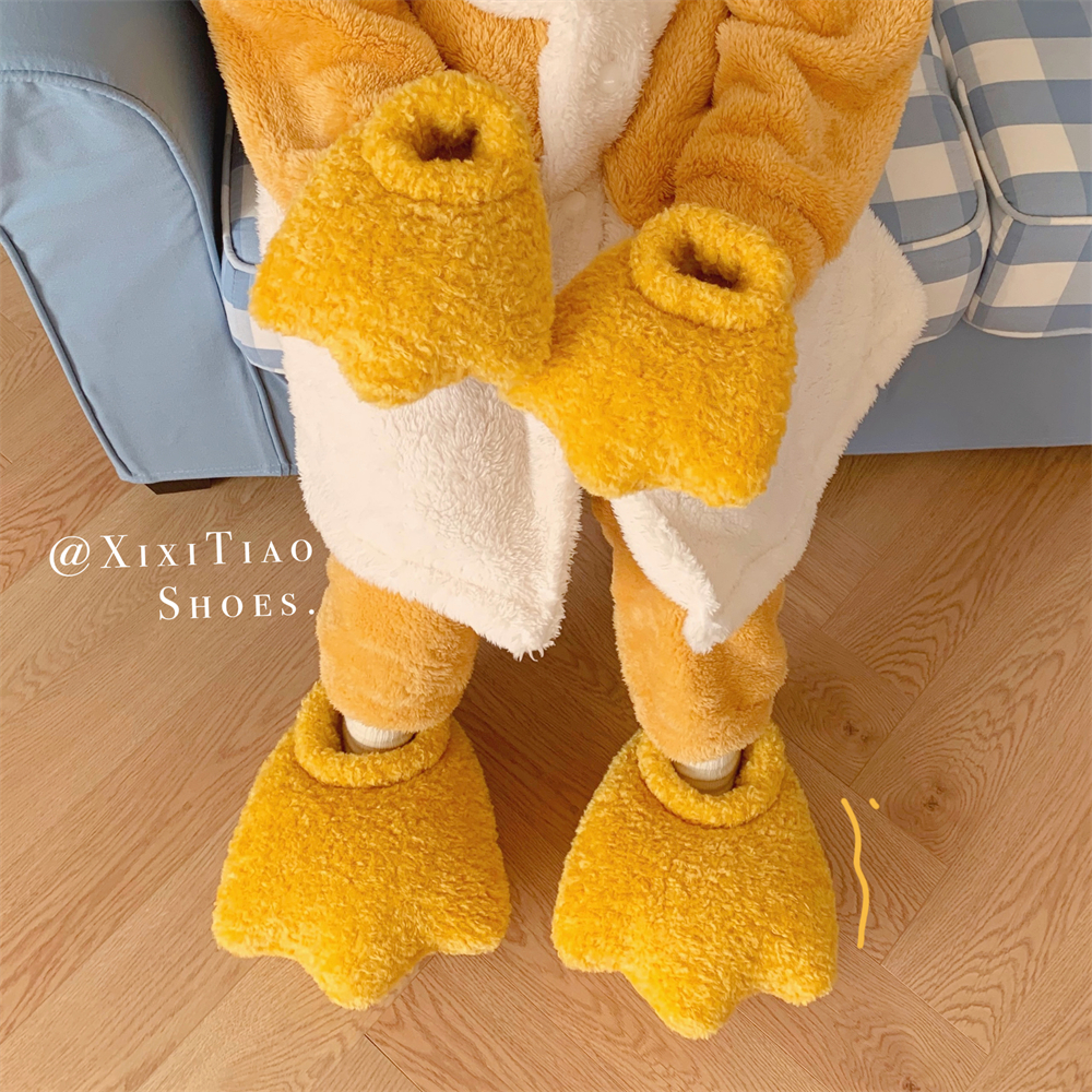 男士 室内家居保暖可爱情侣一对毛毛绒拖鞋 女秋冬季 买一送一棉拖鞋