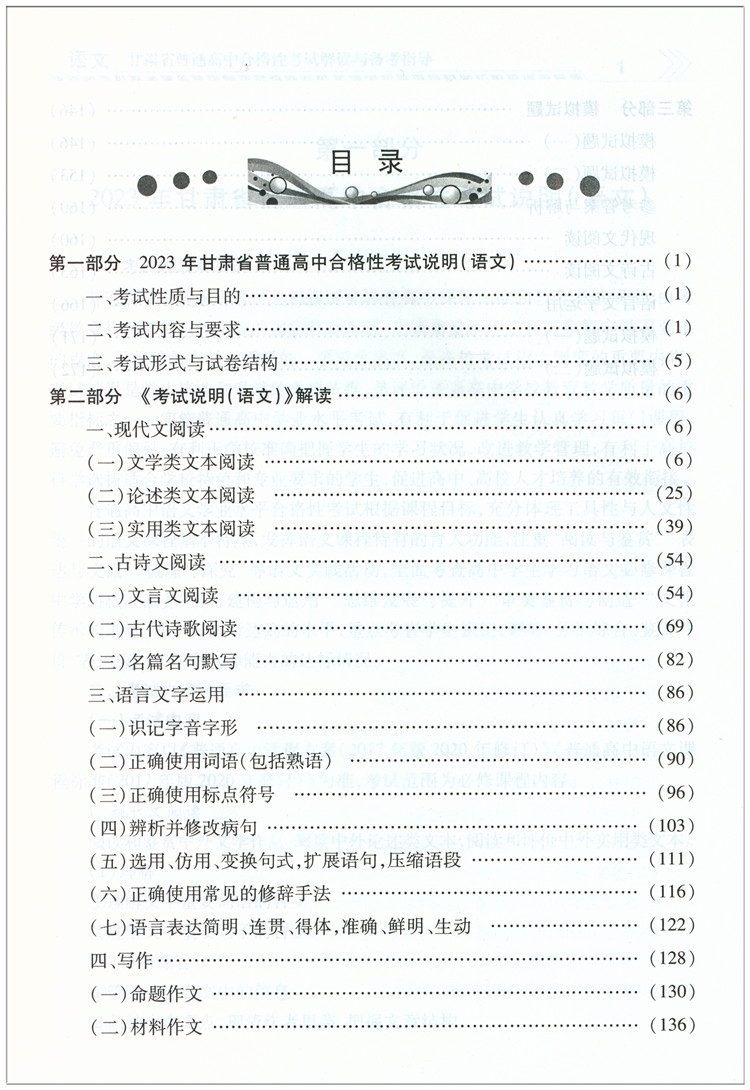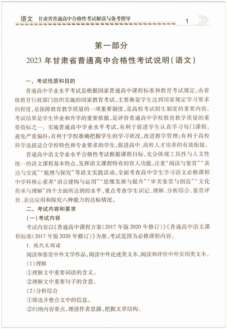 2023高二会考甘肃省普通高中合格性考试解读与备考指导语文考点解读例题解析备考训练