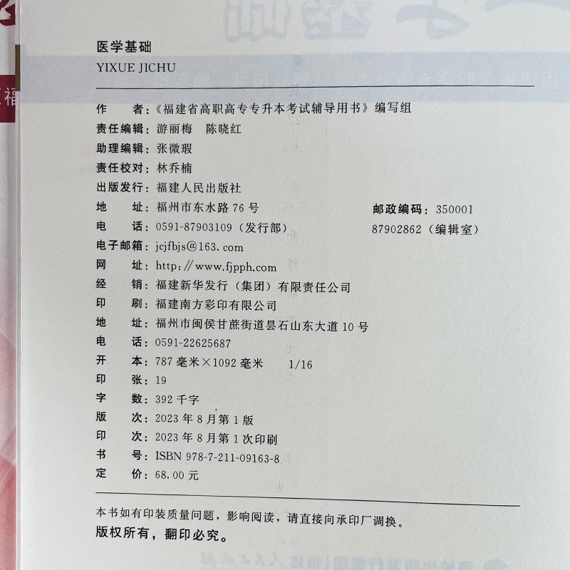 福建人民出版 2024年福建专升本医学基础 发行集团 海峡出版 社官方 医学类福建省高职高专专升本考试辅导用书复习资料教材