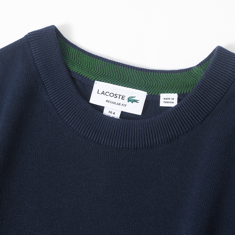 拉科斯特宽松毛衣百搭针织衫 Lacoste 简约圆领上衣男春秋 自营