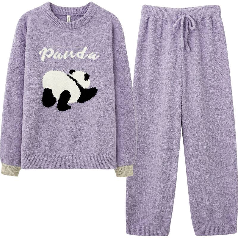 马克公主半边绒睡衣女冬款 冬天珊瑚绒家居服 加厚可爱熊猫套头套装