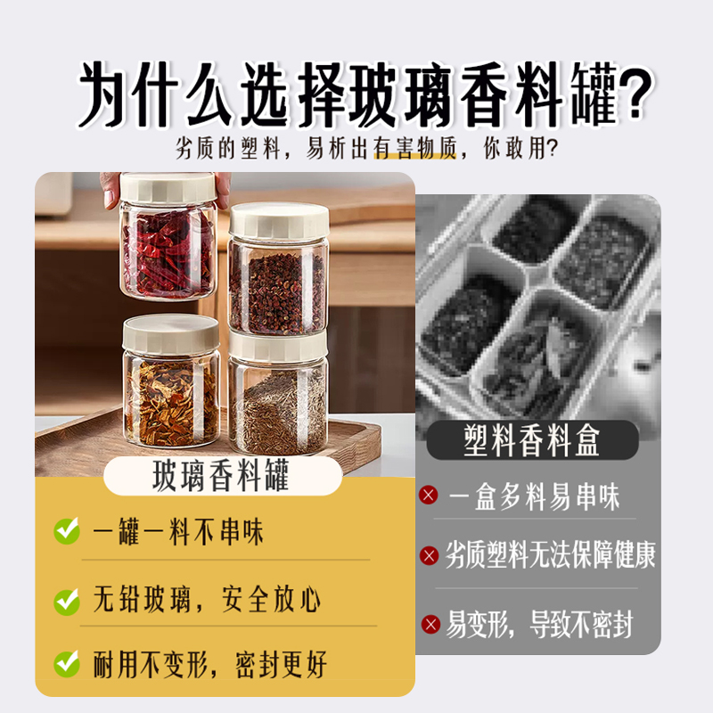 调料罐香料收纳盒玻璃密封罐厨房家用八角桂皮分装 瓶食品级白糖罐
