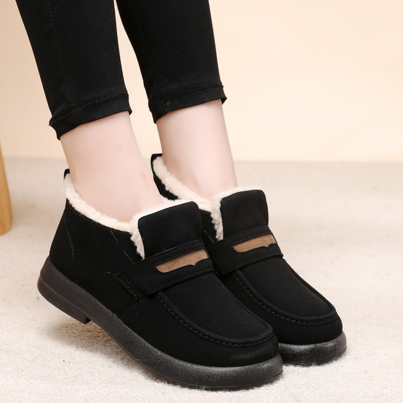 女棉鞋 冬季 厚底高帮时尚 加绒保暖豆豆鞋 软底防滑雪地靴女短靴 新款