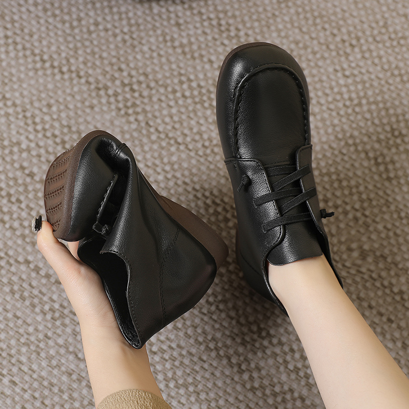 软底平底短靴子女士加绒棉皮鞋 41一43真皮秋冬2025新款 妈妈鞋 大码