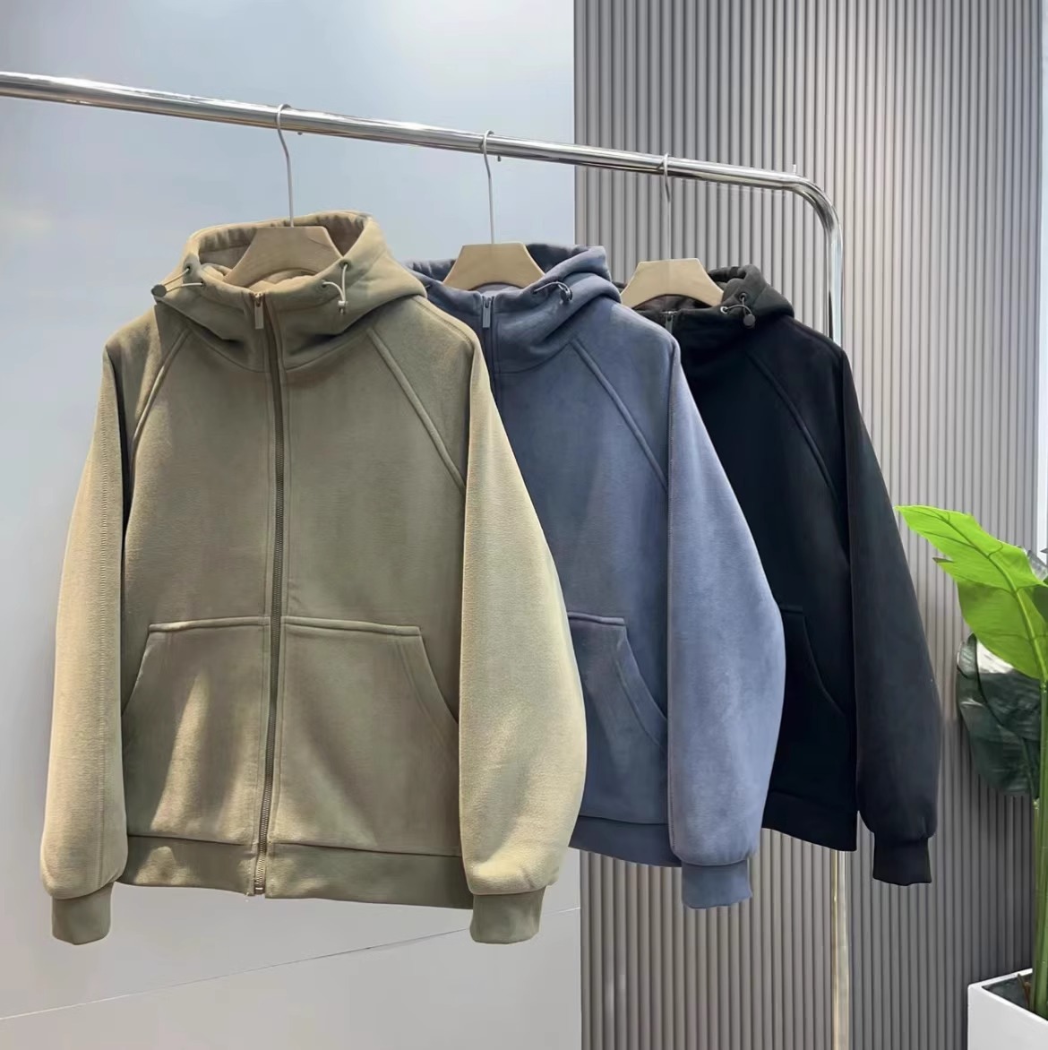 秋冬新款 加厚休闲百搭上衣纯色保暖拉链卫衣 奥粒绒男连帽外套时尚