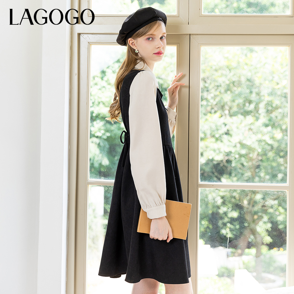 OCHIRLY欧时力 水溶棉V领针织连衣裙收腰A字软糯肌理感秋冬尖货