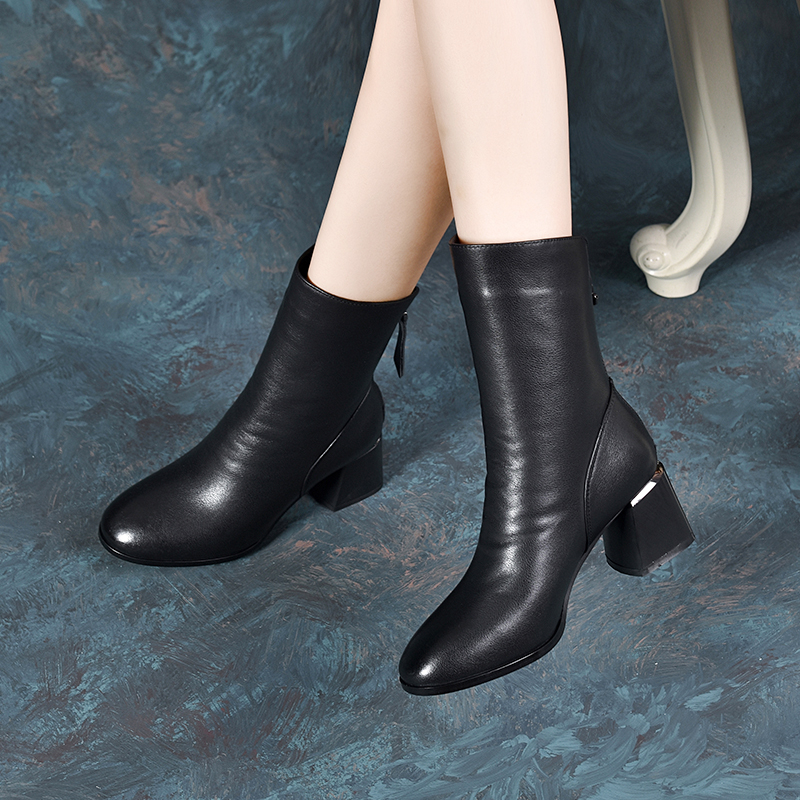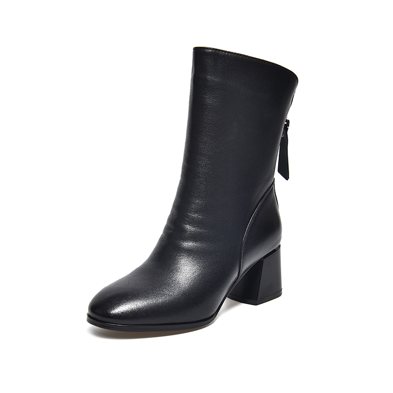周雨彤推荐 百丽黑桃少女靴厚底马丁靴真皮加绒短靴子B8K1DDD4预